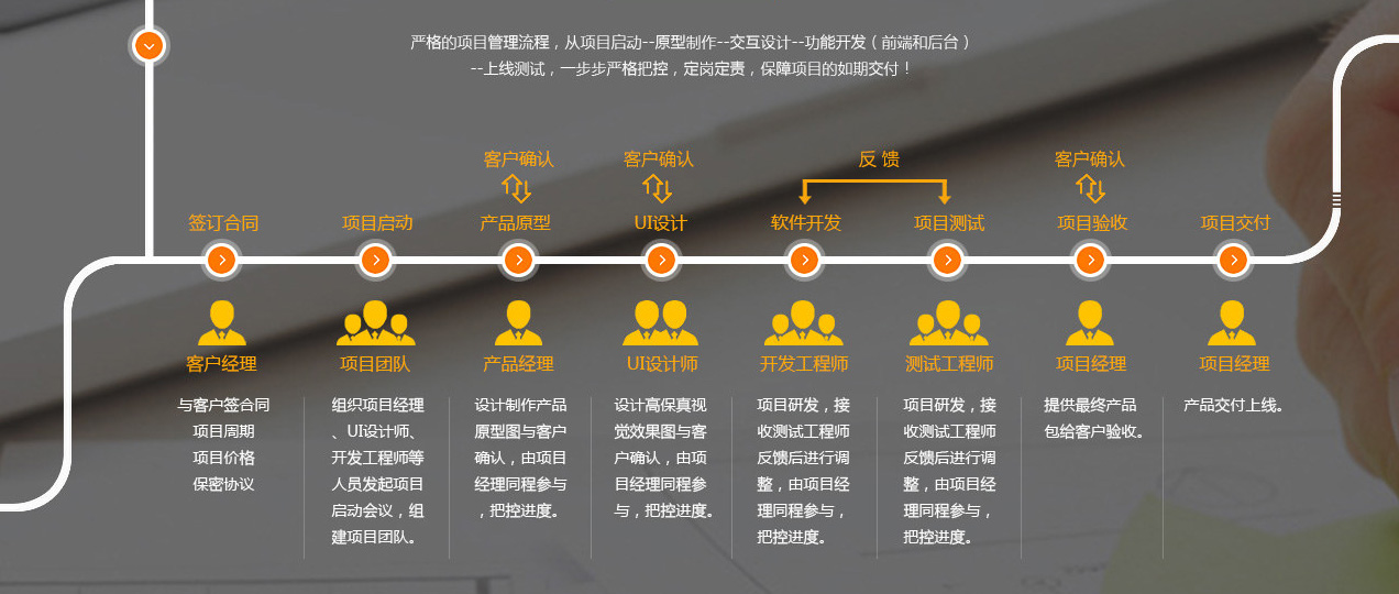 強(qiáng)大的設(shè)計及技術(shù)團(tuán)隊(duì) · 擁有成功的合作經(jīng)驗(yàn) · 標(biāo)準(zhǔn)化作業(yè)體系 · 一對一百分百服務(wù) · 獨(dú)享的顧問式貼身服務(wù)